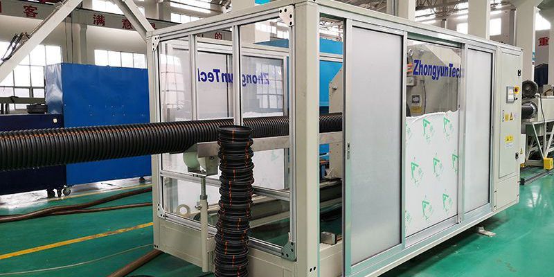 Высокоскоростная экструзионная линия ZC-180H предназначается для производства гофрированных труб с двойными стенками из HDPE/PP/PVC с наружным диаметром от 40 мм до 200 мм и с максимальной скоростью производства 26,6 м/мин. Производимые гофрированные трубы могут использоваться в качестве защитных рукавов для телекоммуникационных и электрических кабелей, а также в качестве дренажных труб для улиц, заводов, площадей, полей для гольфа и спортивных площадок.