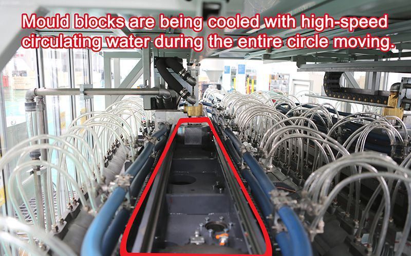 Для охлаждения формующих блоков гофратора используется метод постоянной подачи воды под давлением на блоки, что позволяет достичь максимального охлаждающего эффекта и тем самым значительно увеличить скорость и снизить себестоимость производства труб.